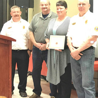 When we talk about family this is just one of the examples of what our department is talking about. The Prescott’s have became apart of our family just over a year ago. Their son Zach Prescott joined our department and has quickly fit in with everyone. Later his mother and father Scotty and Becky Prescott joined our department. Scotty has a long background in the emergency medical field retiring from Walton County Fire Rescue and now working for Holmes EMS. Both have been volunteers in Pinelog Volunteer Fire Department for years. Both parents are receiving there sons year of service award since Zach could not be in attendance. Zach has joined the United States Army and is finishing up his classes to be a combat medic.